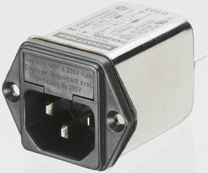 Filtr wejściowy złącza IEC2 10A C14 Schaffner Montaż na kołnierzu 5 x 20mm
