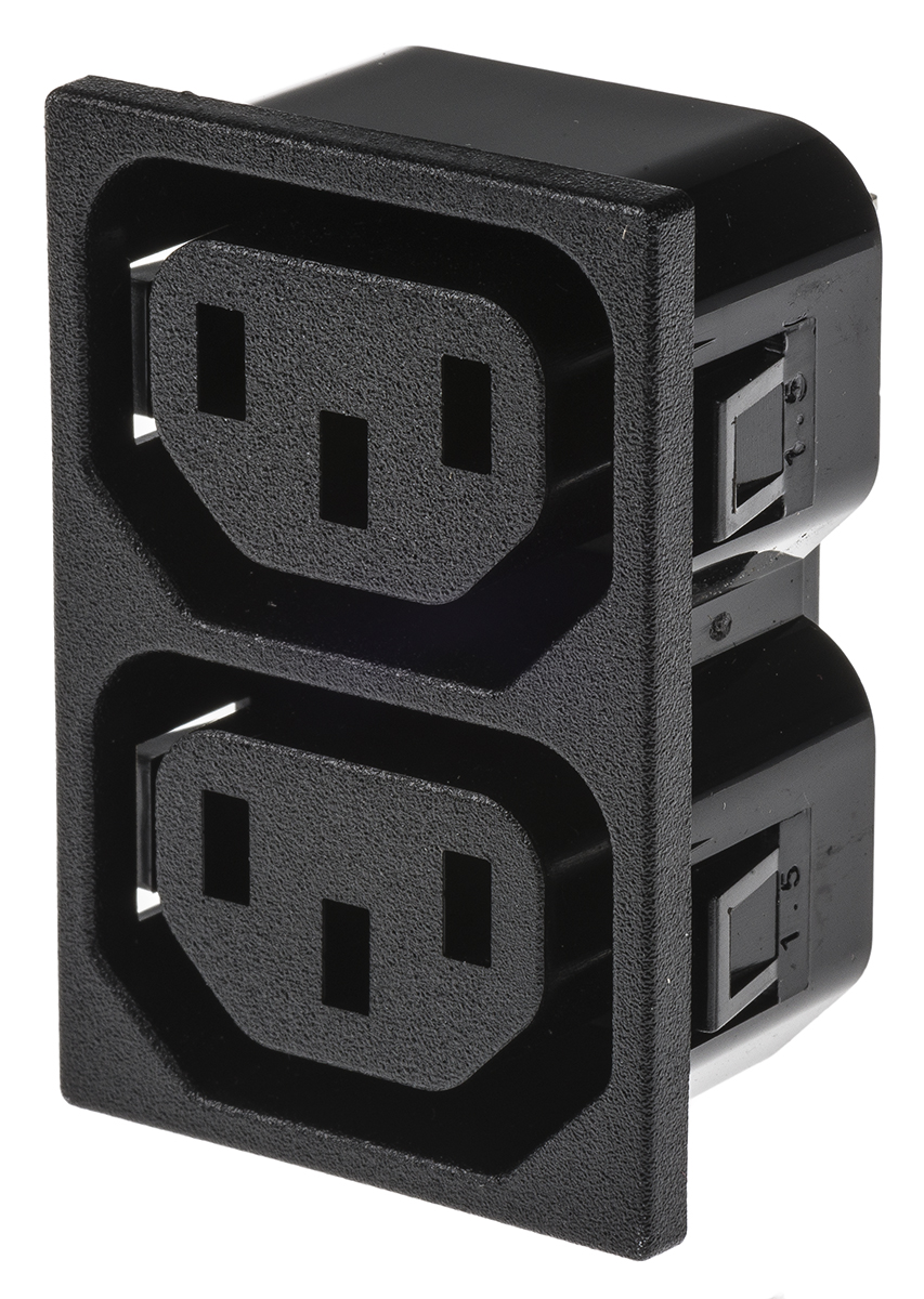Złącze IEC IEC 2 X C13, na Zatrzask Żeński 10A Proste liczba bezp None Lutowane Bulgin