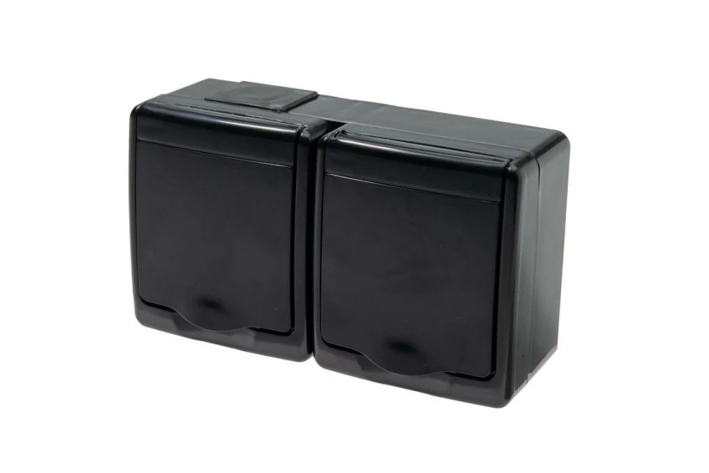 Gniazdo zasilające podwójne natynkowe hermetyczne IP44 czarne z klapką czarną 2x [2P+Z] 16A HERMES ELEKTRO-PLAST NASIELSK