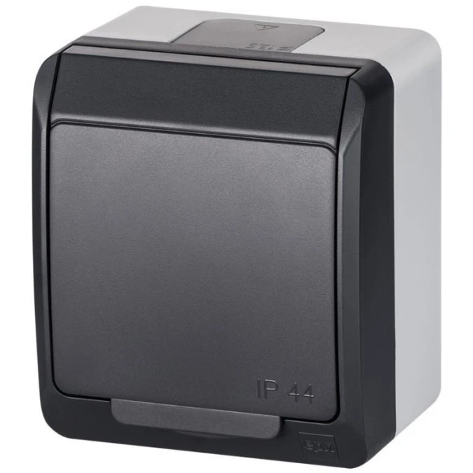 10. Gniazdo zasilające pojedyncze natynkowe hermetyczne IP44 antracyt z klapką antracytową 2P+Z Schuko 16A HERMES ELEKTRO-PLAST 27.75