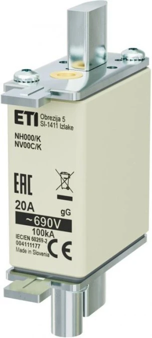 Wkładka bezpiecznikowa - z wybijakiem NH000/K 20A gG 690V 004111177 /3szt./