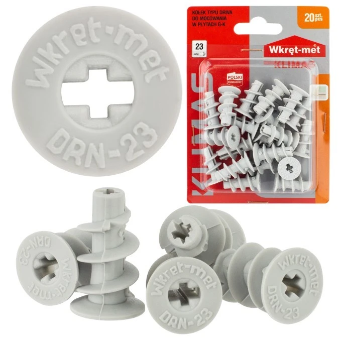9. Kołki typu Driva DRN-23 do mocowania w płytach gipsowo-kartonowych KLIMAS 20szt 16.37