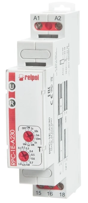 6. Przekaźnik czasowy 1P 1sek-10dni 12-240V AC/DC 50/60 Hz, załączenie na nastawiony czas, RPC-1WU-UNI 863194 127.72