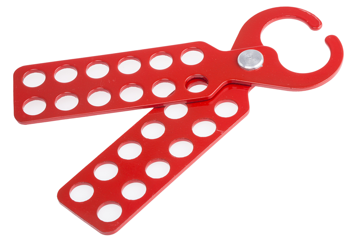 Grupowa blokada klamrowa LOTO, z etykietą, czerwona (5 szt.), 065960