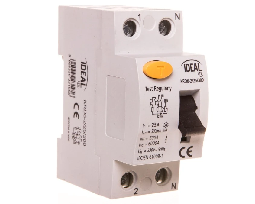 9. Wyłącznik różnicowoprądowy 2P 25A 0,1A typ A KRD6-2/25/100-A VDE 23225 124.44