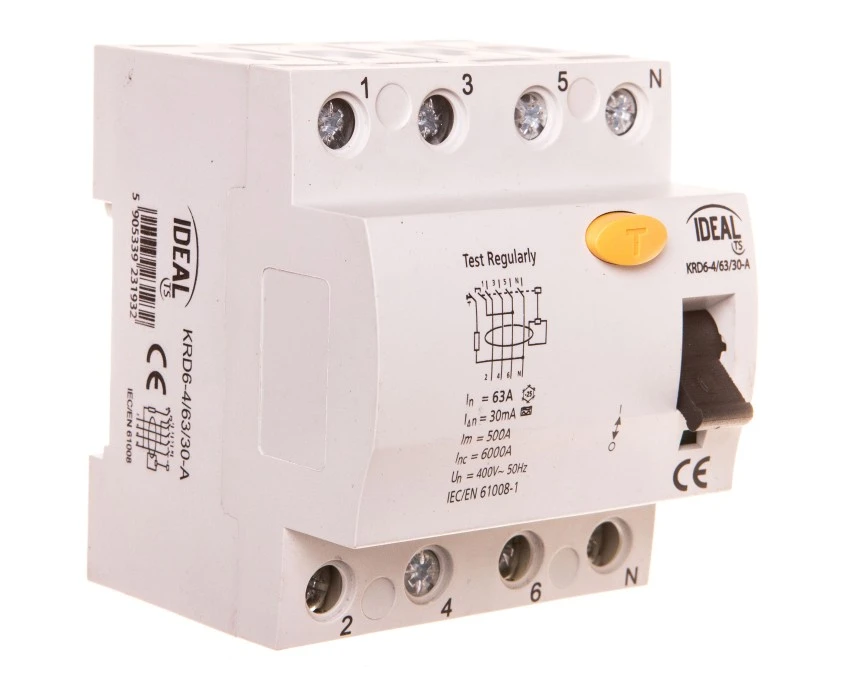 3. Wyłącznik różnicowoprądowy 4P 63A 0,03A typ A KRD6-4/63/30-A VDE 23193 116.38