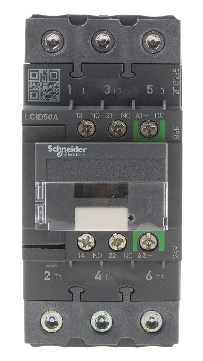 2. Stycznik 24 V DC Schneider Electric styki: 3 22 kW 50 A 3NO Montaż na szynie DIN Śruba LC1D50ABBE 1850.41