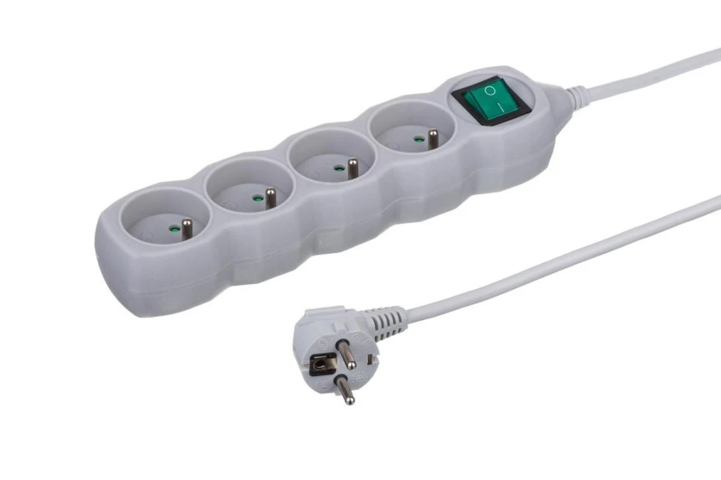 Przedłużacz 4-gniazdowy, 5m szary, z wyłącznikiem, 3x1,0mm OWY 24385
