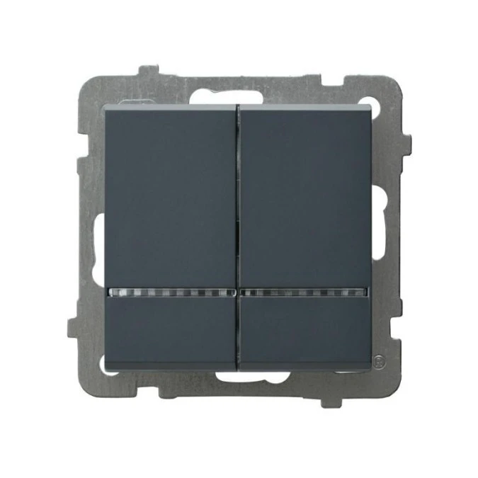 SONATA Łącznik dwugrupowy świecznikowy z podświetleniem niebieskim szary grafit ŁP-2RS/m/73