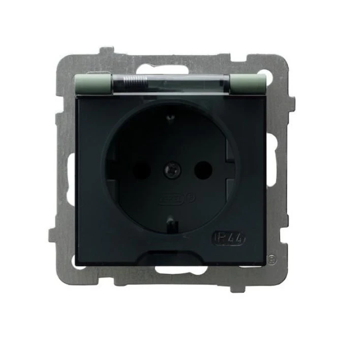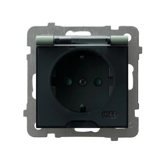1. AS Gniazdo bryzgoszczelne z uziemieniem schuko IP-44 wieczko przezroczyste zielony mat GPH-1GS/m/84/d 29.82