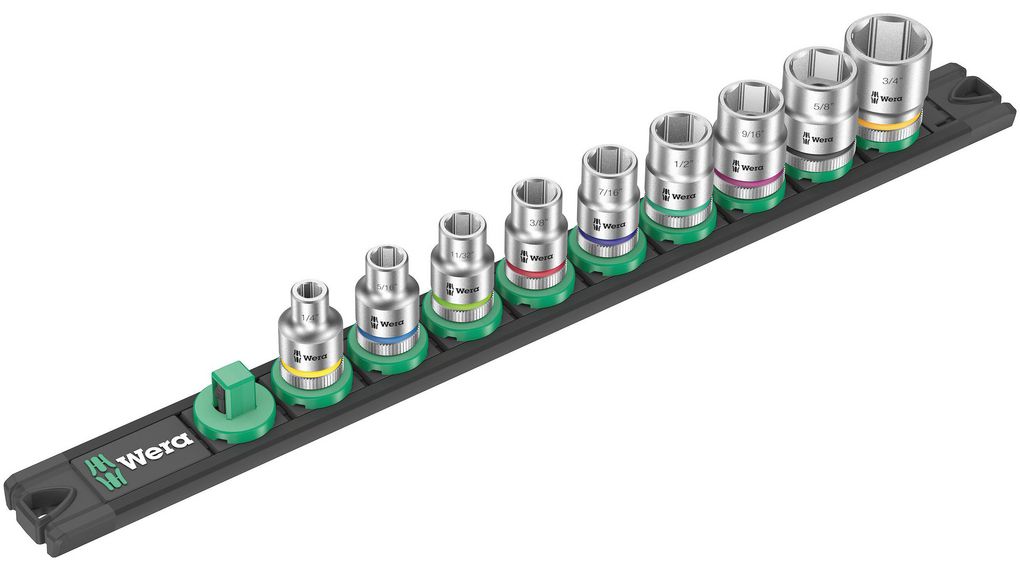 6. Szyna gniazd rozmiar napędu 3/8 cala elementy: 9 Wera 568.40