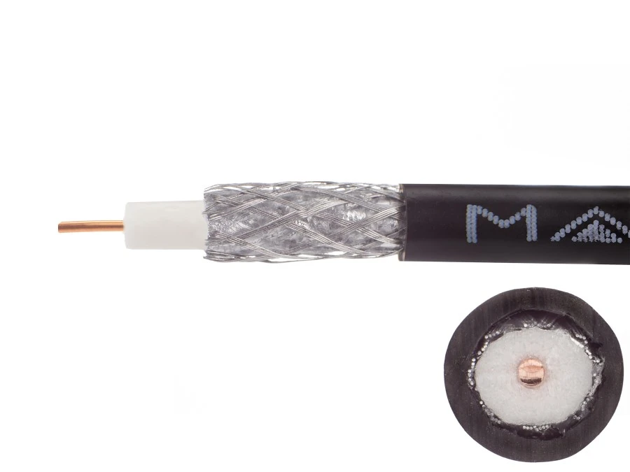 Przewód koncentryczny zewnętrzny żelowany 75ohm RG6 1,02/4,57/6,8 Cu czarny Maxcable /100m/
