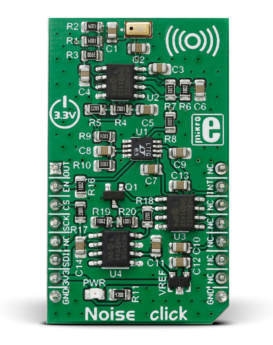 Zestaw rozwojowy czujników, MCP4921, Płytka Click mikroBus, Noise click, Czujnik mikrofonowy