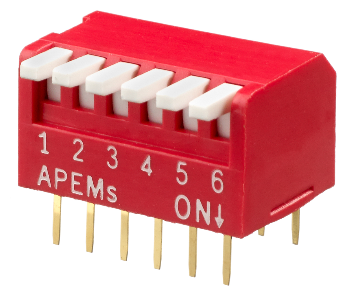 4. Przełącznik fortepianowy DIP 6-pozycyjny SPST THT 25 mA -20 → +70°C 6.11 x27