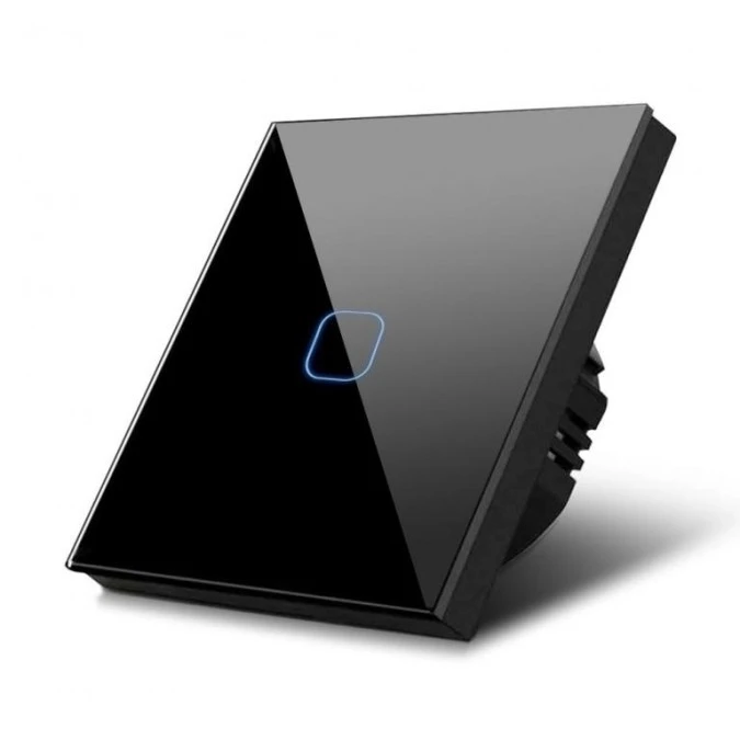 Dotykowy włącznik światła, pojedyńczy, szklany, czarny z kwadratowym przyciskiem MCE701B