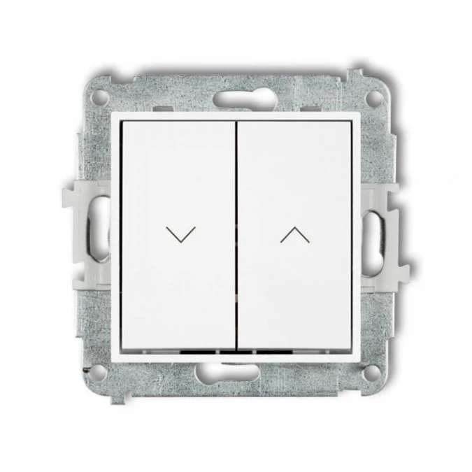 MINI Wyłącznik pojedynczy ze schodowym (dwa klawisze bez piktogramów wspólne zasilanie) biały MWP-10.11 KARLIK