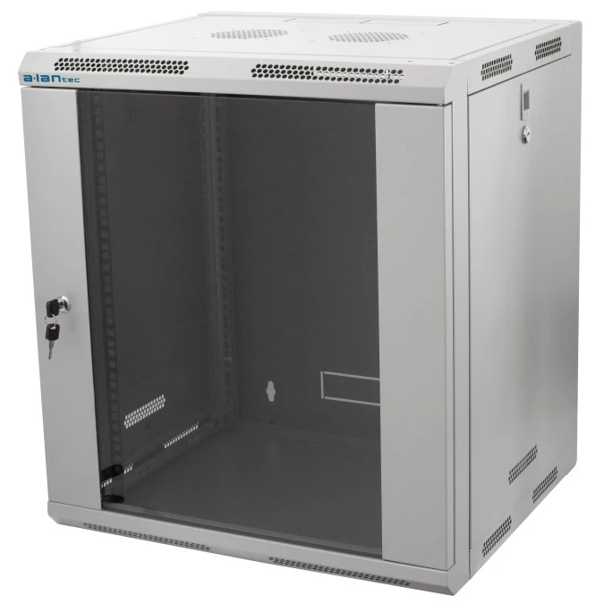 14. Szafa rack wisząca 19 cali 12U 600x600, niedzielona, drzwi szklane, kolor szary FLAT PACK 827.61