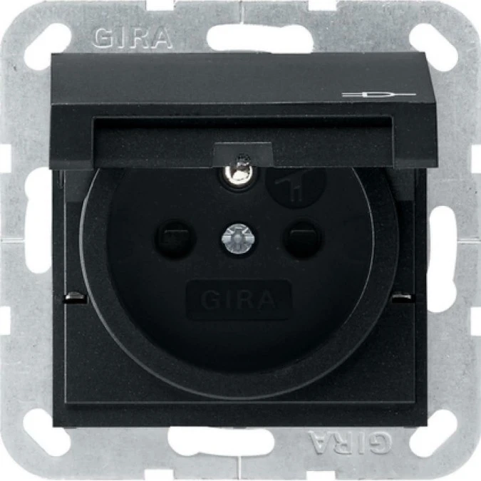 Gira Gniazdo z bolcem z klapką i ochr.dz system 55 czarny mat