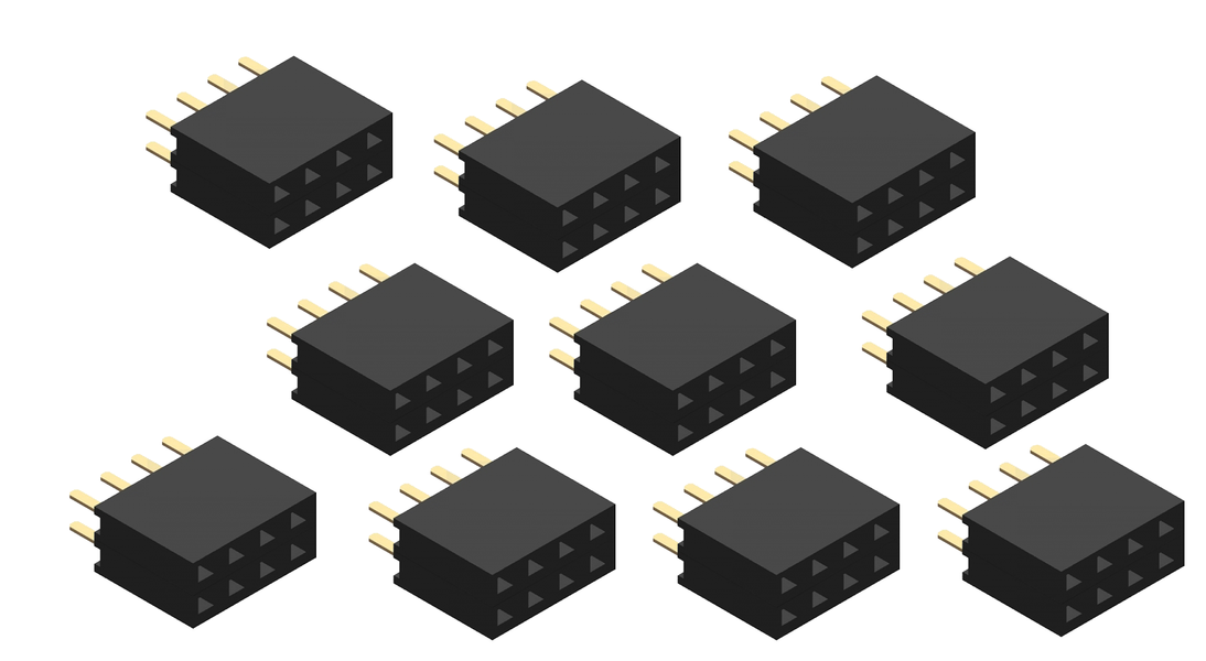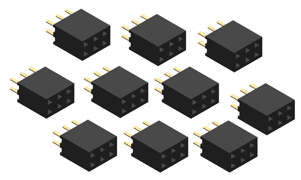 This set of 10 female headers with 2x3 pins is a ...