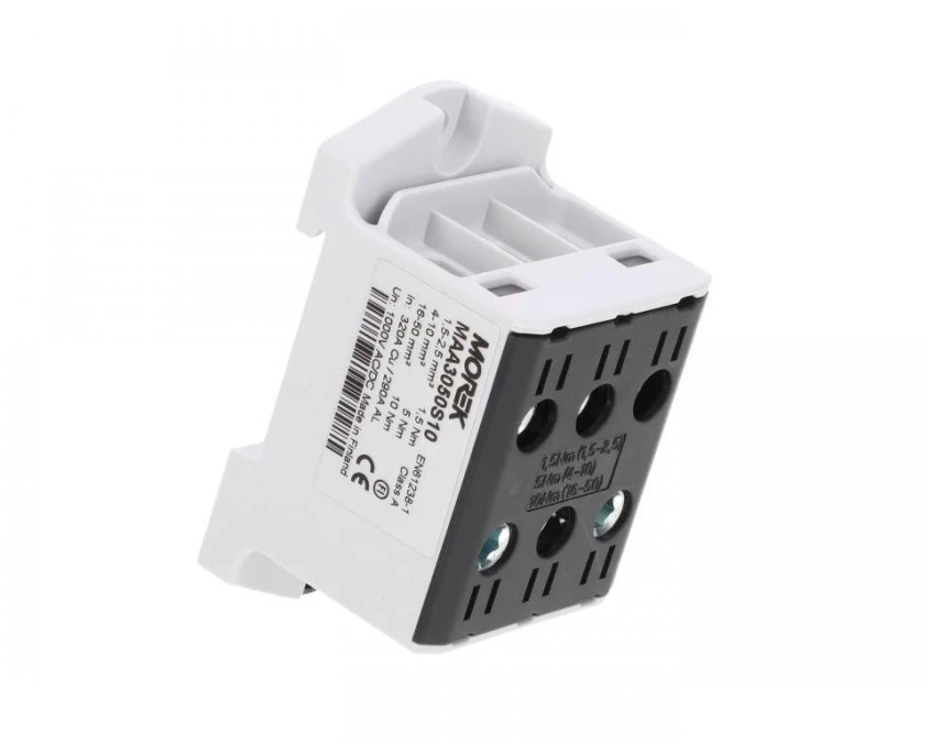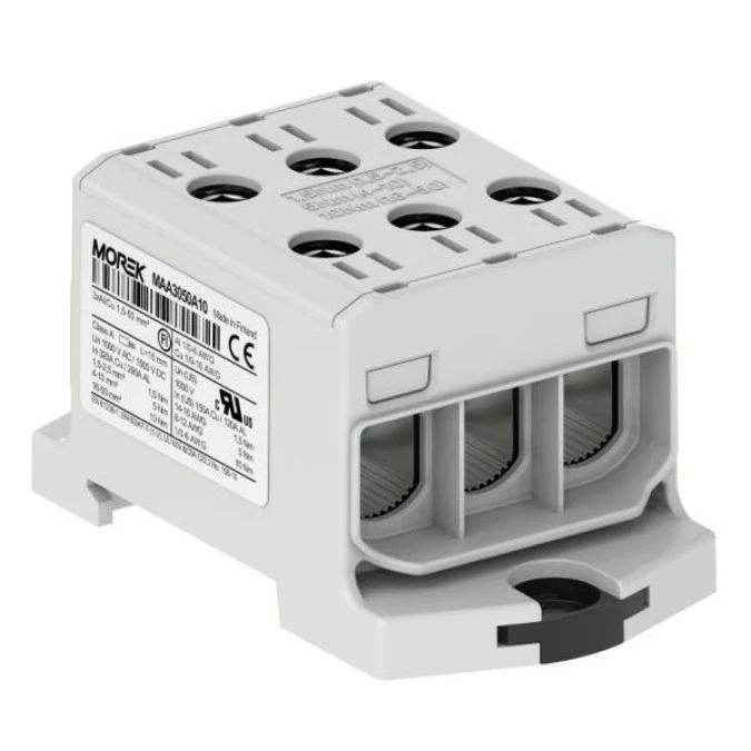 1. Złączka szynowa 1,5-50mm2 szara 6otwor AL/CU 1000V TH35 1P Morek MAA3050A10 60.39