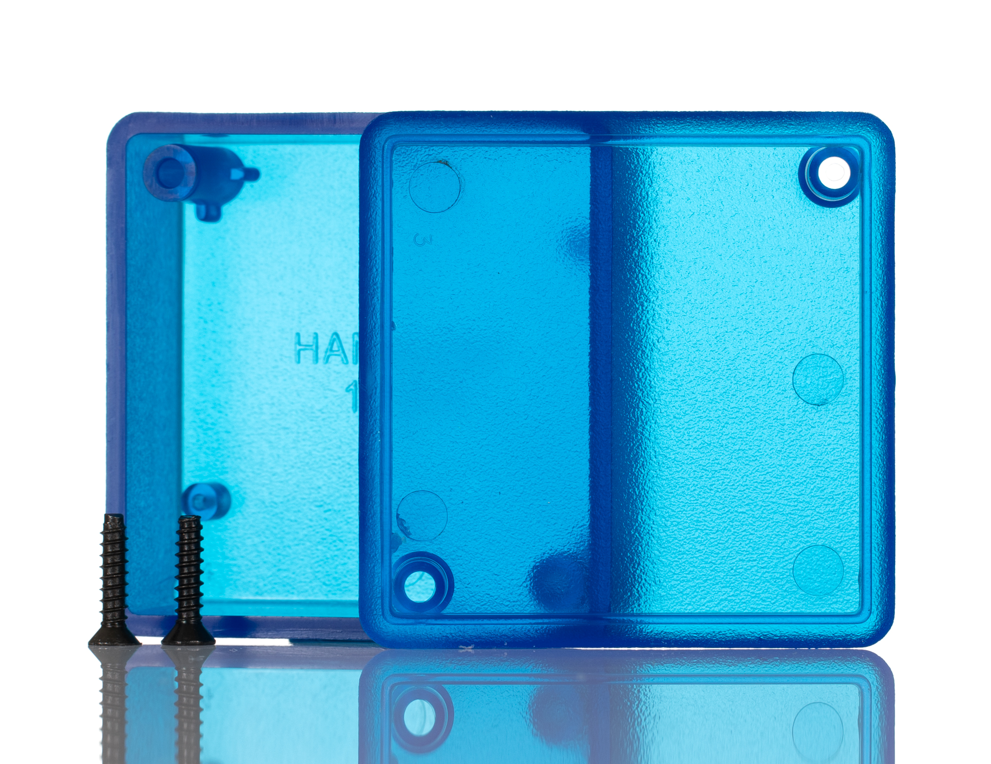 Obudowa ABS szerokość zew. 35 mm długość zew. 35 mm wys. zew. 20 mm Hammond IP54 Półprzezroczysty niebieski