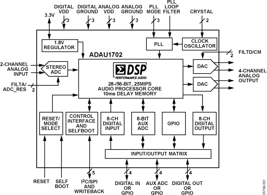 SigmaDSP 28-/56-Bit Audio Processor with Two ADCs and Four DACs