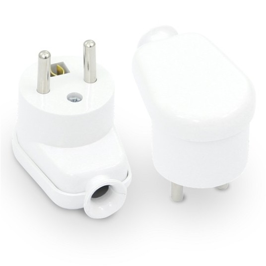 5. Wtyczka prądowa kątowa [2P+Z] 230V 16A biała WT-16 na kabel 6.54