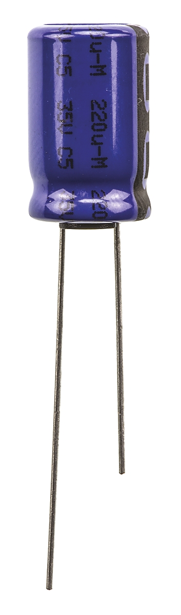 7. Kondensator 220μF 35V dc Radialny, Otwór przelotowy Vishay roztaw: 5mm 10 (Dia.) x 16mm 9.44 x5