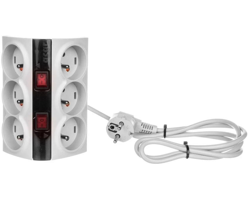 7. Przedłużacz przeciwprzepięciowy 6‑gniazd ACAR-SMART czarny 111.02