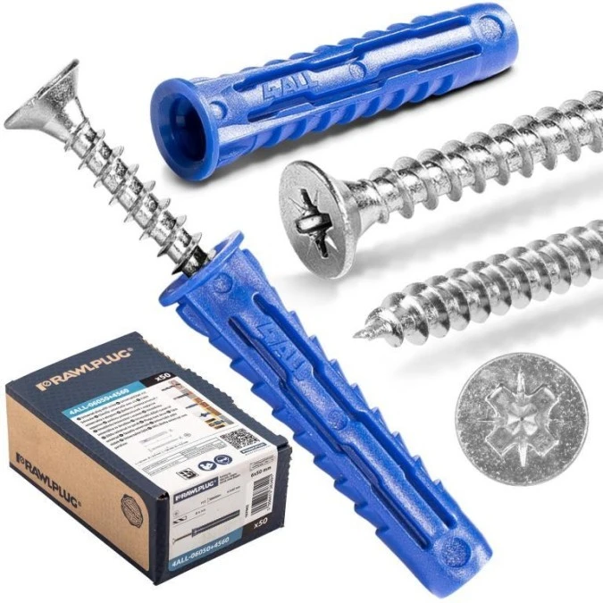 9. Kołek uniwersalny Rawlplug 6x50 z wkrętem 4,5x60 4ALL-06050+4560 – 50 szt. 25.36