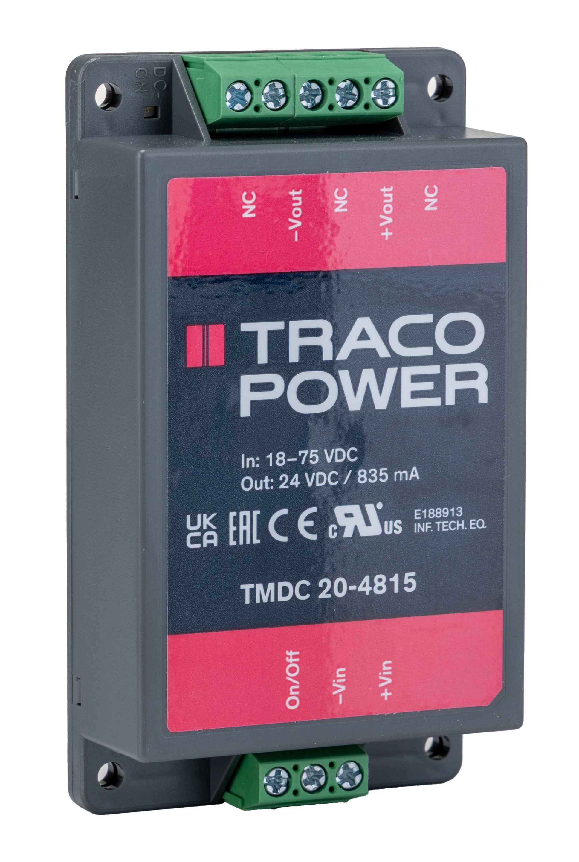 Przetwornica DC-DC, 20W, Uwe 18 → 75 V DC, Uwy 24V dc, Iwy 835mA, TRACOPOWER Nie
