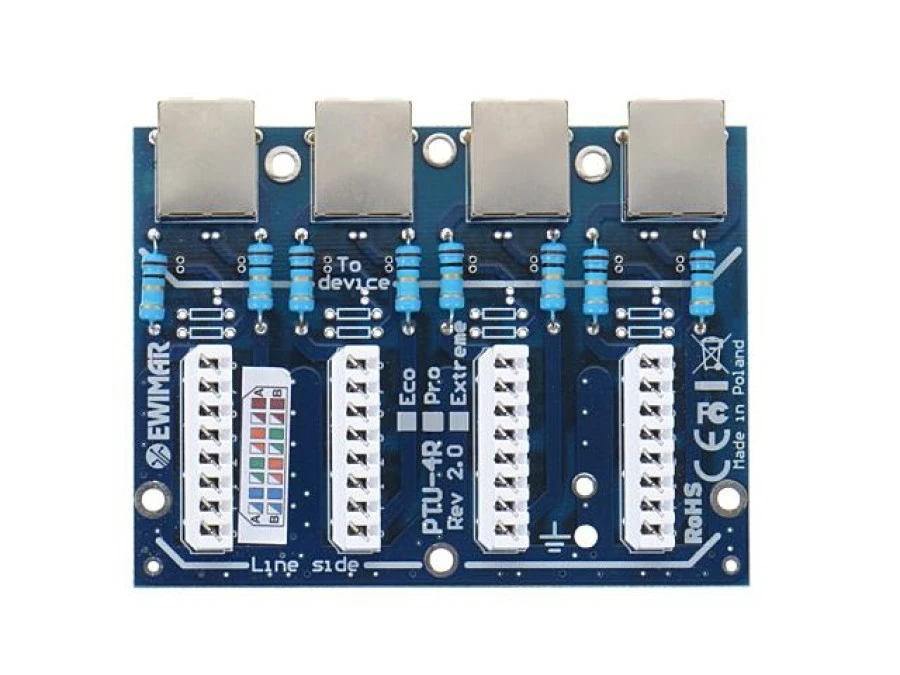 Moduł LAN z zabezpieczeniem przeciwprzepięciowym ECO z ochroną PoE EWIMAR PTU-54-ECO/PoE