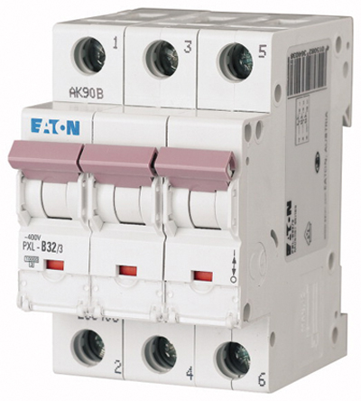 8. Wyłącznik nadprądowy MCB, Typ C, 3-biegunowy, 32A, 400V, 48V, na szynę DIN, Eaton, PXL 281.27