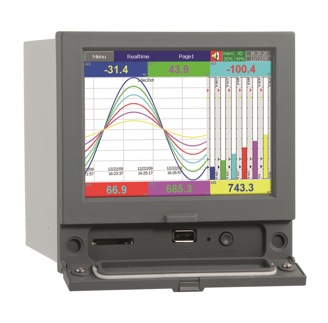Rejestrator wykresów, kanały: 6, Graphical, Wilgotność, temperatura, wyjścia: 0