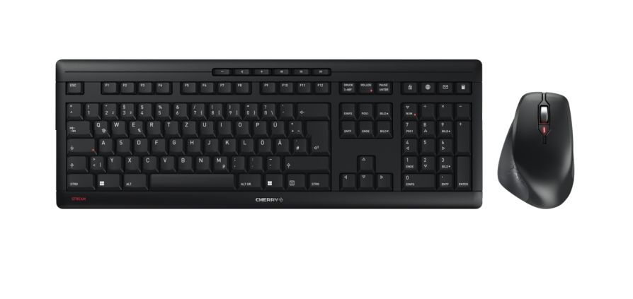 Zestaw klawiatury z myszką, Zestaw biurkowy Cherry Stream, Czarny, Bezprzewodowe, QWERTZ (niemiecka), Ergonomiczna