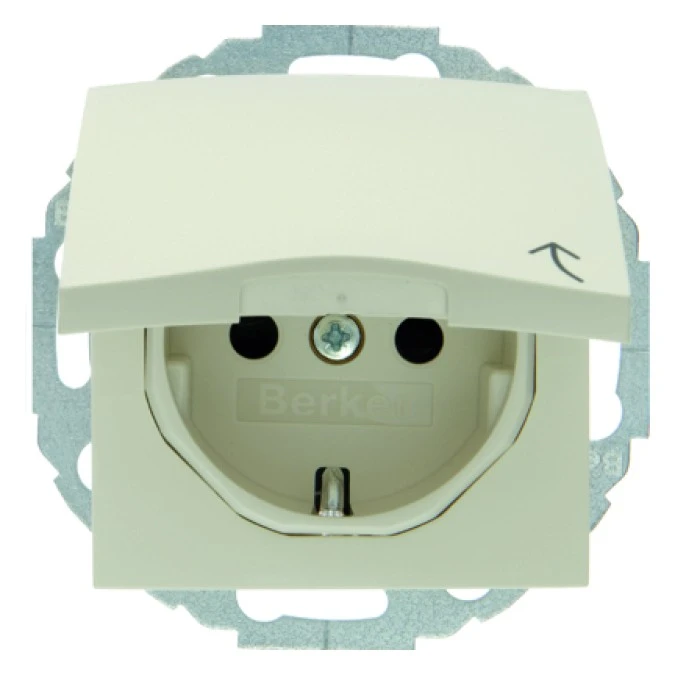Gniazdo pojedyncze SCHUKO z pokrywą z podwyższoną ochroną styków kremowy połysk S.1 47448982