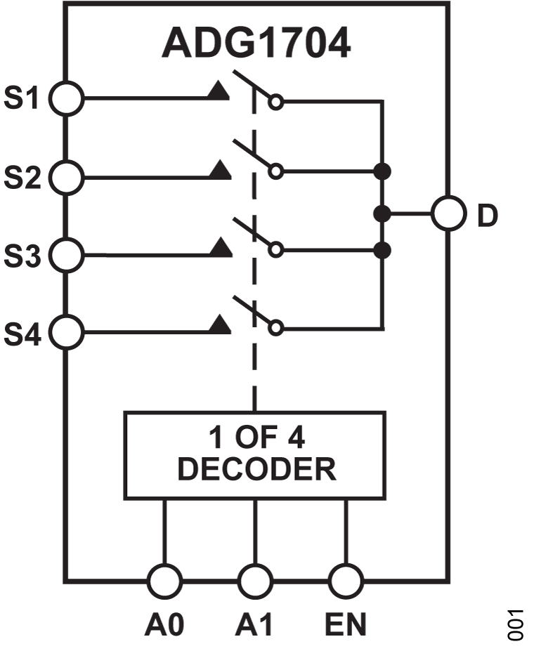 The ADG1704 is an analog 4:1 multiplexer and ...