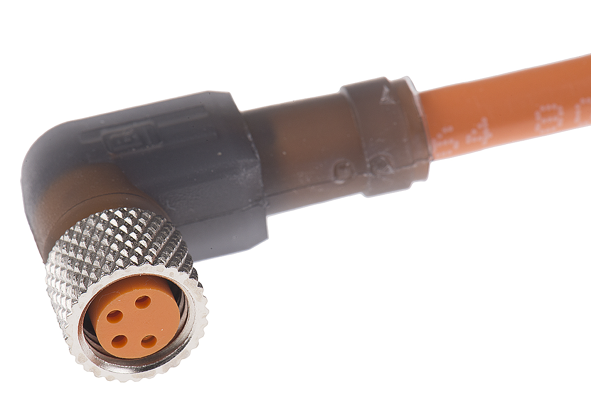 9. Kabel konfekcjonowany M8 jednostronnie zakończony 4-pinowy złącze żeńskie kątowe samoblokujące gwintowane PVC RKMWV 4-07/10 M 75.77