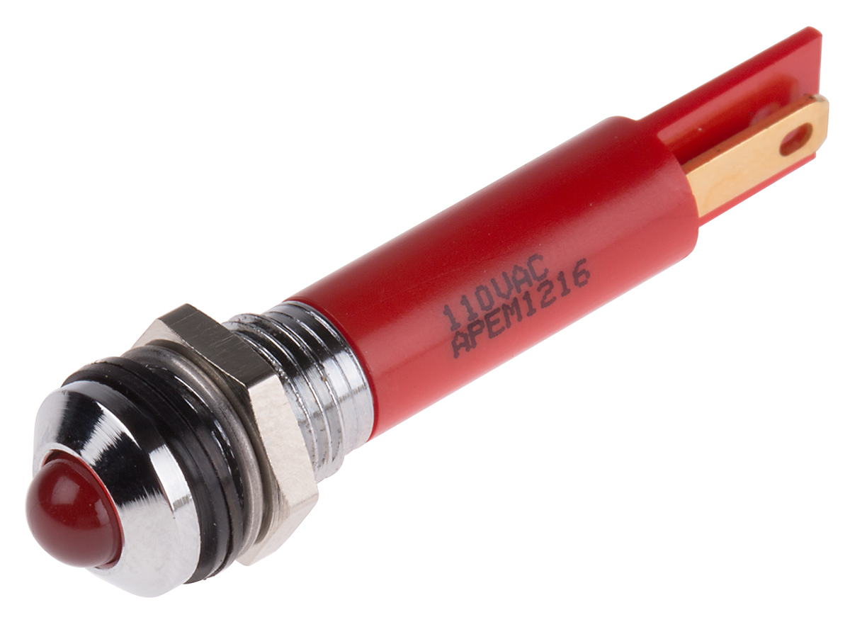 10. Lampka kontrolna do montażu panelowego 110V ac, czerwona 8mm LED Chrom RS PRO 79.58
