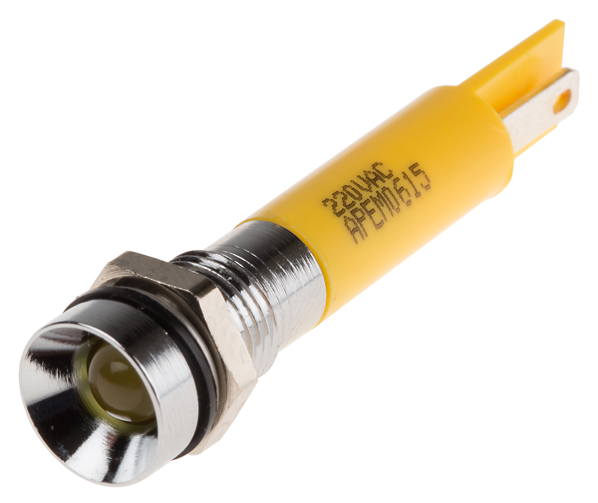 12. Lampka kontrolna do montażu panelowego 110V ac, Żółta 8mm LED Chrom Faston, oczko lutownicze RS PRO 83.17