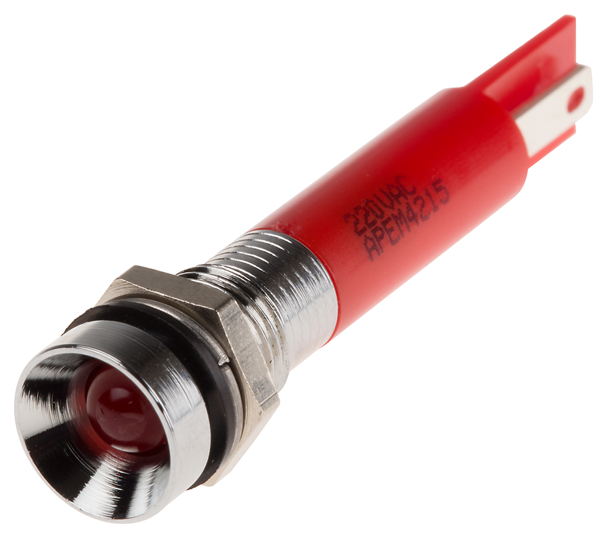11. Lampka kontrolna do montażu panelowego 220V ac, czerwona 8mm LED Chrom RS PRO 80.27