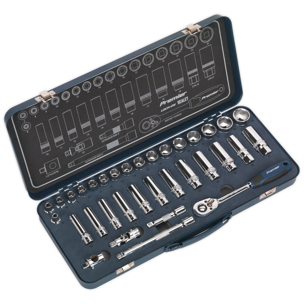 Sealey AK27481 Socket Set 34pc 3/8"Sq Drive Lock-On™ 6pt Metric
