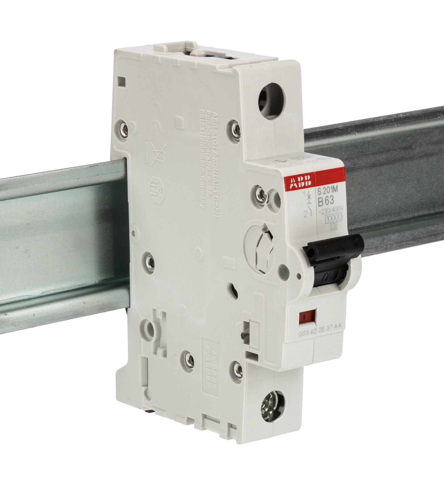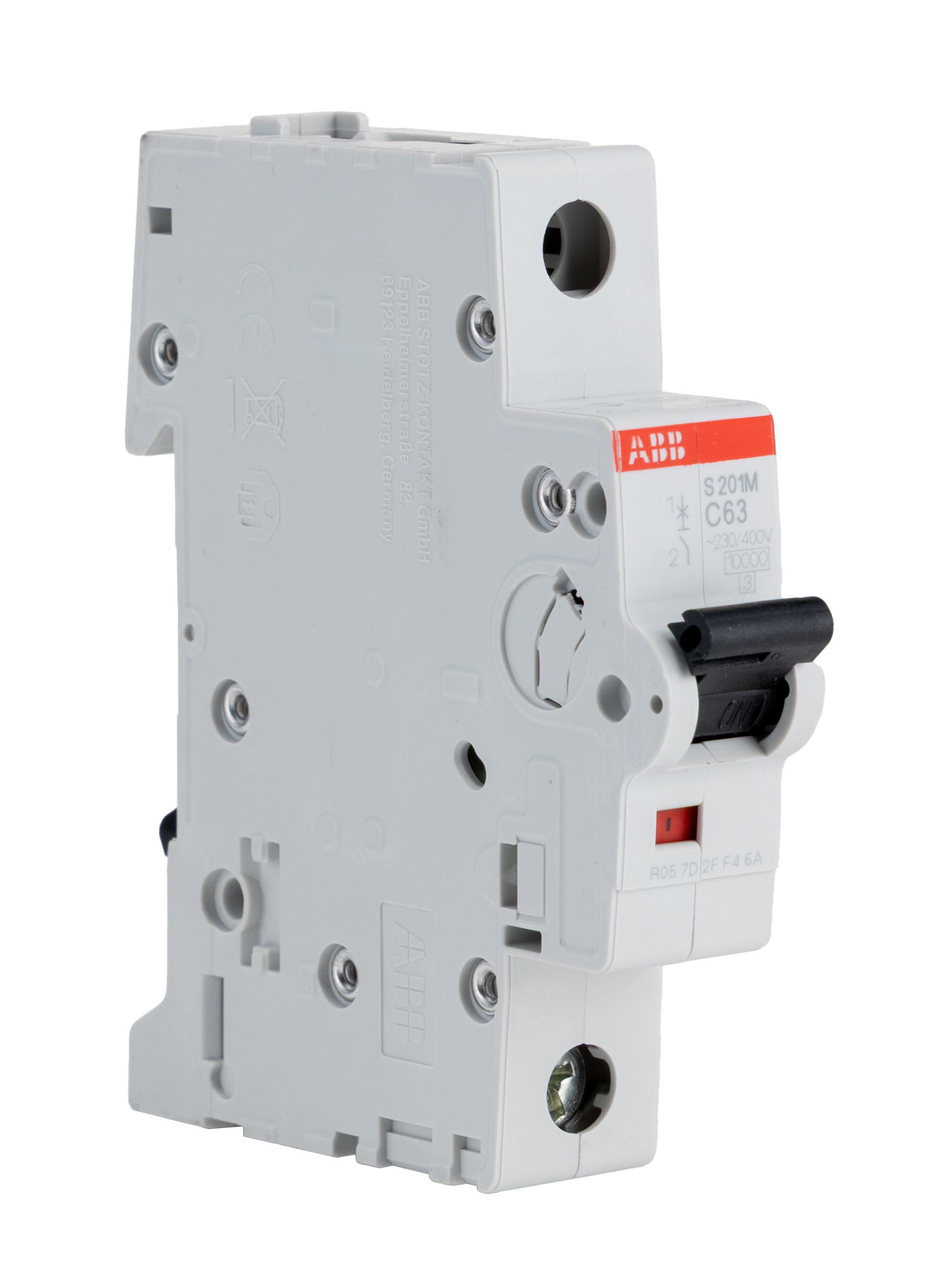 7. Wyłącznik nadprądowy MCB, Typ B, 1-biegunowy, 63A, 253V, 72V, na szynę DIN, ABB S201M-B63, S200M 137.43