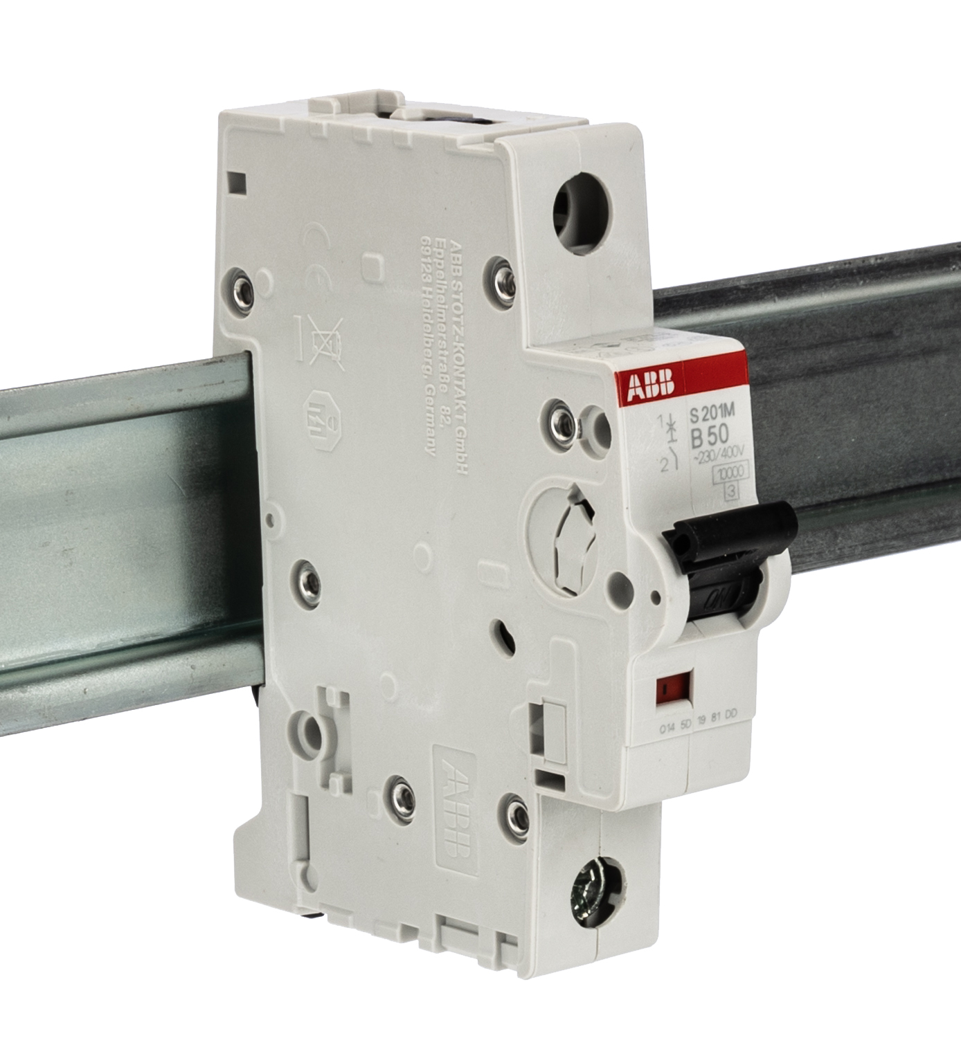 5. Wyłącznik nadprądowy MCB, Typ C, 1-biegunowy, 50A, 253V, 72V, na szynę DIN, ABB S201M-C50, S200M 135.66