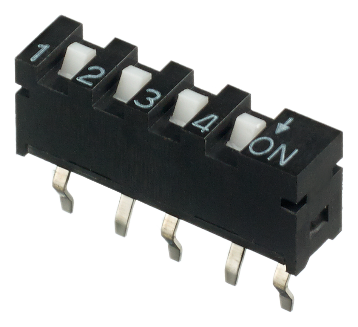 14. Przełącznik SIP 4-pozycyjny SPST do druku 10 mA przy 5 V DC (impulsowy), 100 mA przy 50 V DC (liniowy) -30 → 7.46 x37