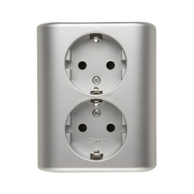 Simon 54 Gniazdo podwójne Schuko natynkowe z przesłonami wersja skandynawska, szybkozłącza, srebrny mat EGSZ2SNZ/43