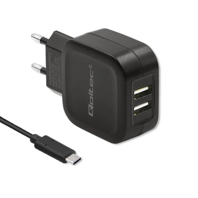 Qoltec Ładowarka sieciowa 17W 5V 3.4A 2xUSB + kabel USB typC
