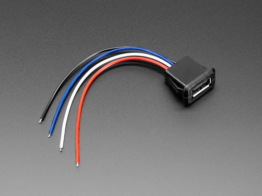 7. Adafruit Snap-In Panel Mount Cable - USB Type A Socket to 4 Wires 13.65