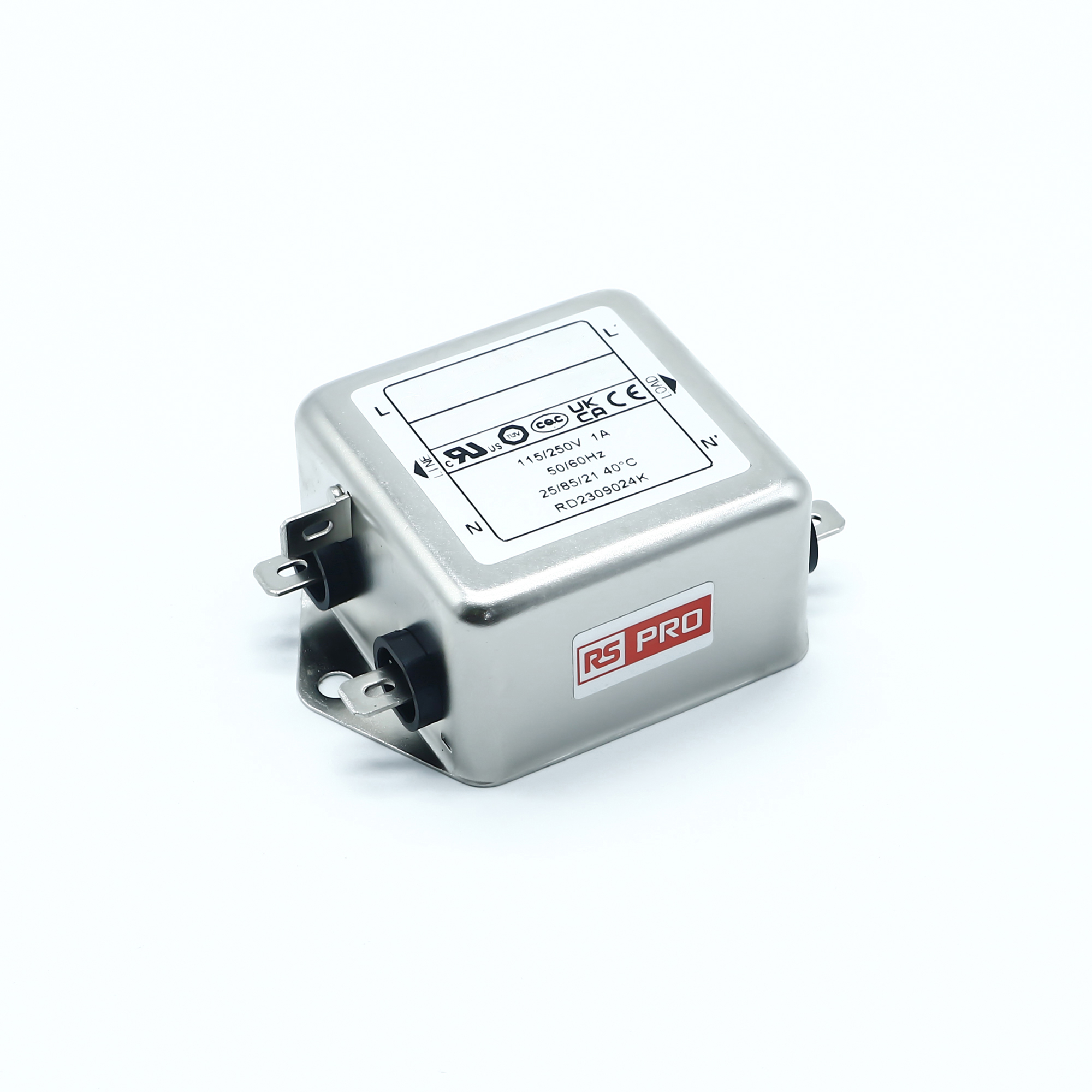 Filtr EMI 1A 1-fazowy 1MΩ 250 V AC 50/60Hz 2 x 10mH RS PRO Montaż w obudowie