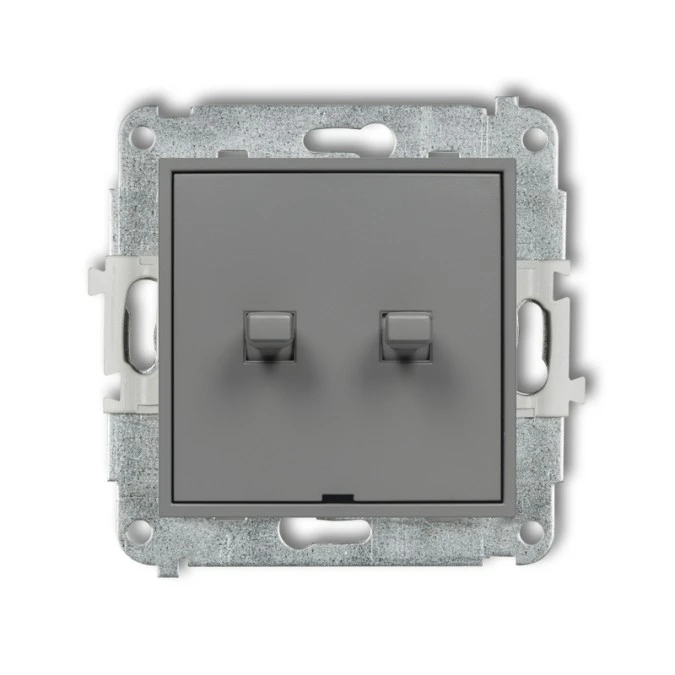 1. MINI Wyłącznik podwójny świecznikowy zwierny przycisk w stylu amerykańskim (dwa klawisze bez piktogramów wspólne zasilanie) szar 30.70